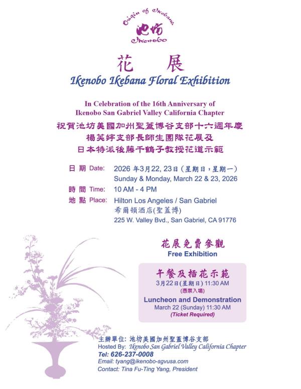 主辦單位: 池坊美國加州聖蓋博谷支部